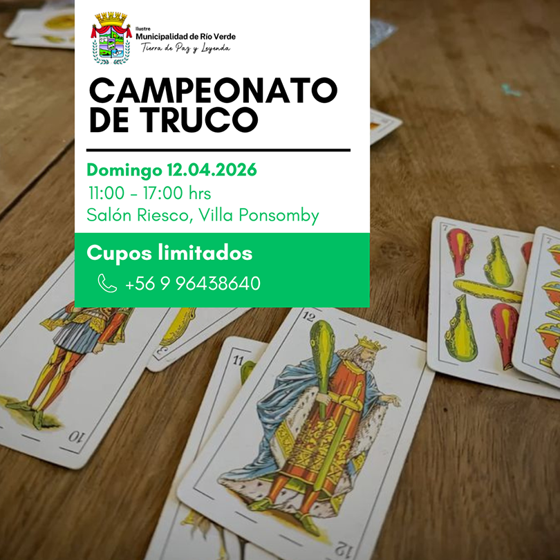 La Ilustre Municipalidad de Río Verde, invita cordialmente a las vecinas y vecinos de la comuna a participar de un entretenido Campeonato de Truco 🤝✨